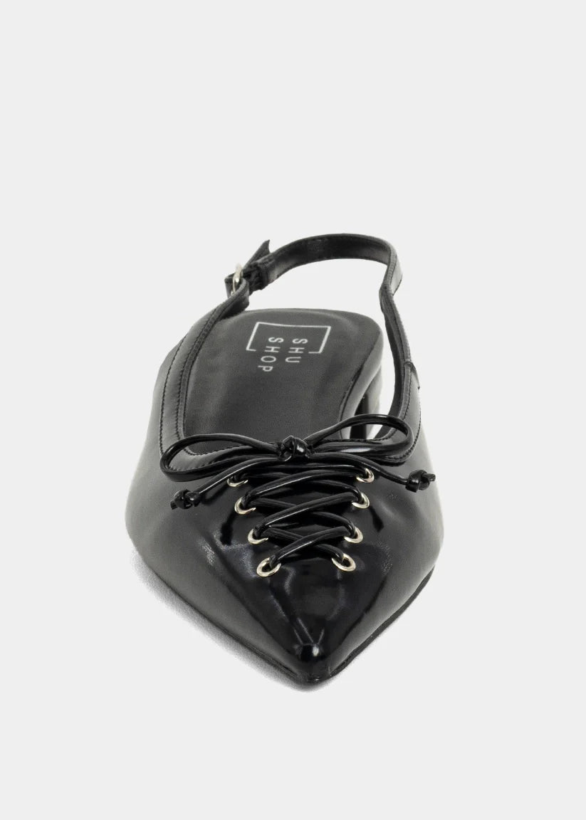 The AMY slingback in black is your go-to flat for understated edge. With its pointed toe, delicate gold eyelets, and sleek faux leather finish, this style balances modern minimalism with a touch of attitude. Designed to transition effortlessly from office to after-hours, AMY delivers comfort without compromising on style.