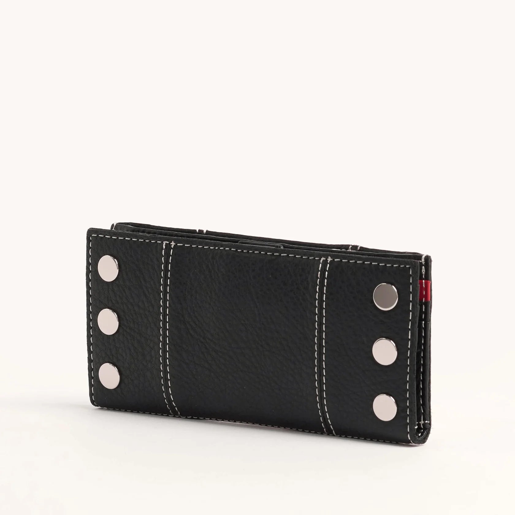 You can't cruise through DTLA without the 110 North. That's why we named our essential folding wallet after LA's fan-favorite freeway. This organizer's dream features 10 credit card slots, a clear ID pocket, zippered pocket and two drop pockets to hold cash. Cha-ching. Crafted from soft pebbled leather with a subtle sheen, Tempo Black features bold white contrast stitching. Our creative inspiration? Rhythm, time, and tickling the ivories.