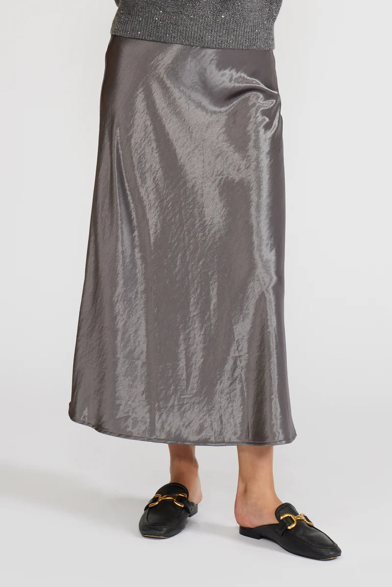 Barbara Satin Skirt- pewter