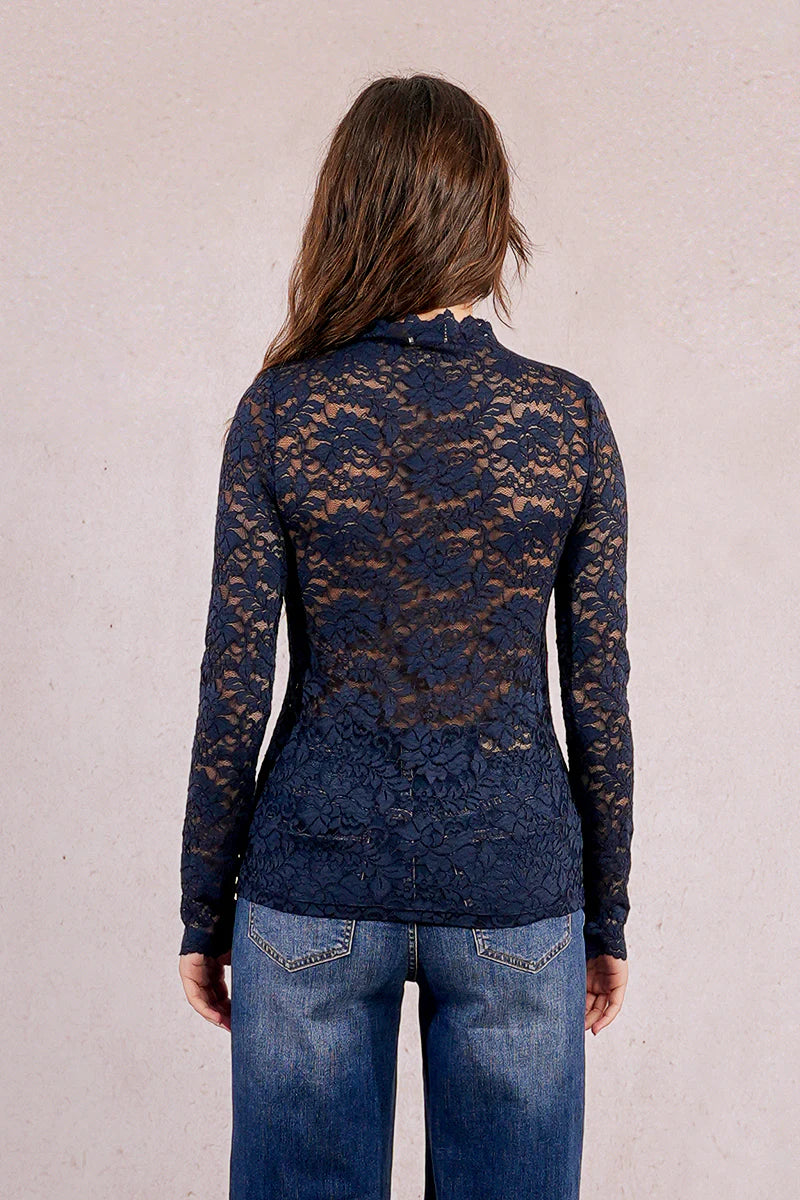 This women's sweater from Molly Bracken combines style and comfort. Its navy color makes it versatile and ideal for many occasions, whether for everyday looks or more formal ones. The natural length of the blouse offers a regular fit, making it perfect for layering with other pieces in your wardrobe.