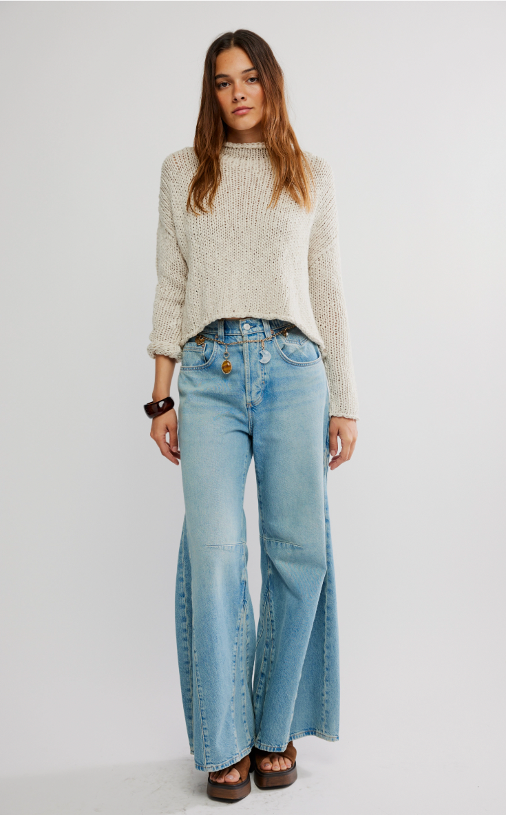 So light and perfect for any-season layering, this staple sweater is featured in an airy cotton knit with a rolled neckline and dropped shoulders for that laidback look.