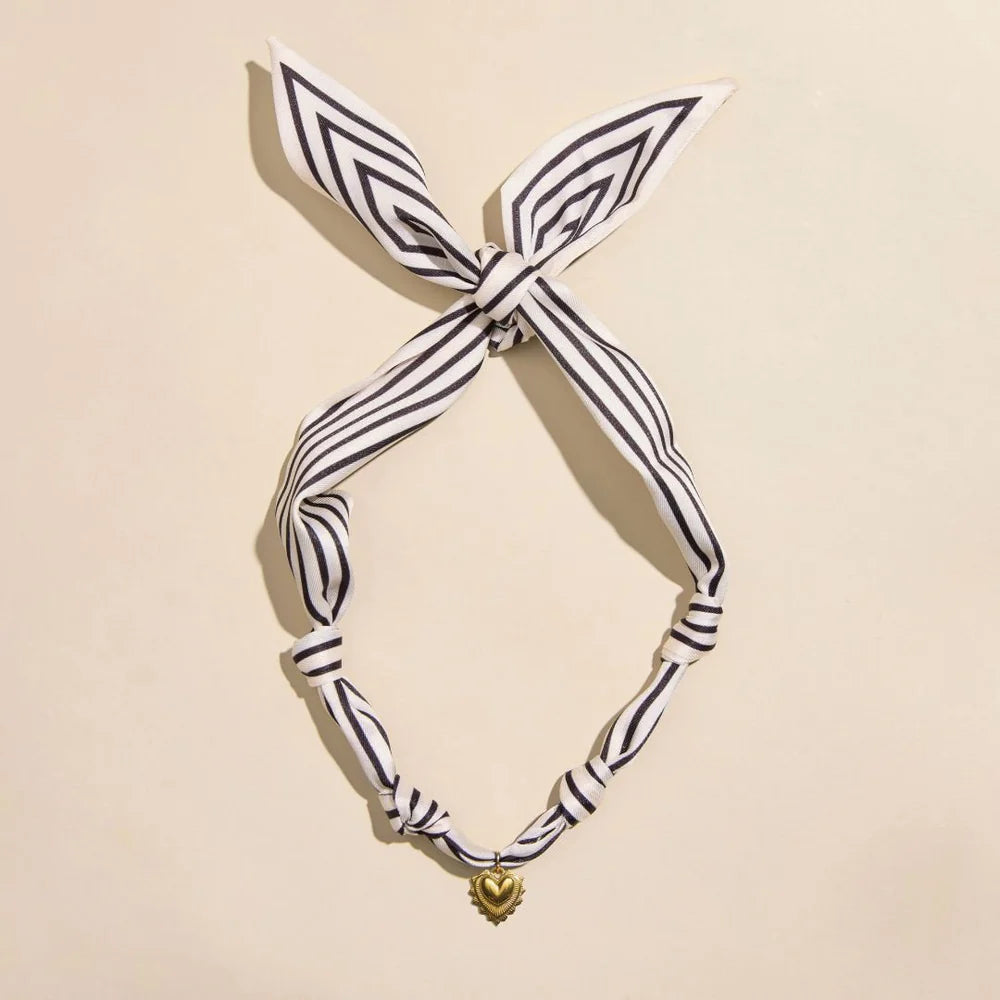 Add an eclectic accent to your look with this bandana charm necklace, featuring a satin tied scarf necklace, finished with a gold radiant heart charm attached.