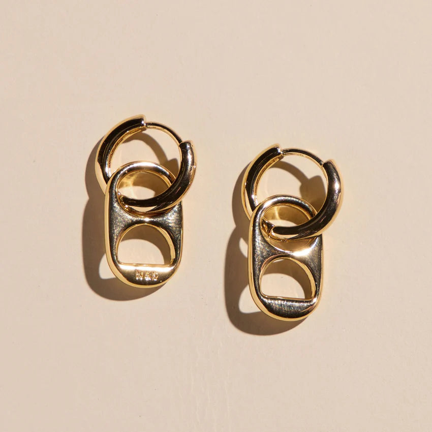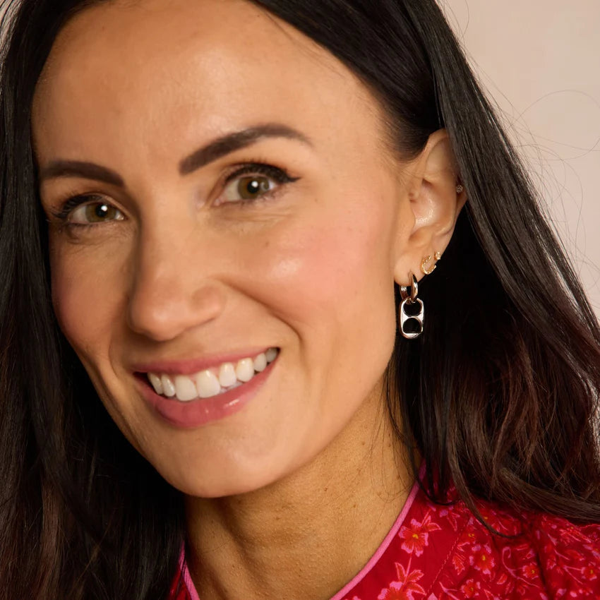 The Soda Tab Huggies feature a soda tab charm on a rhodium plated huggie. This style makes a unique statement and is perfect for any ear stack.