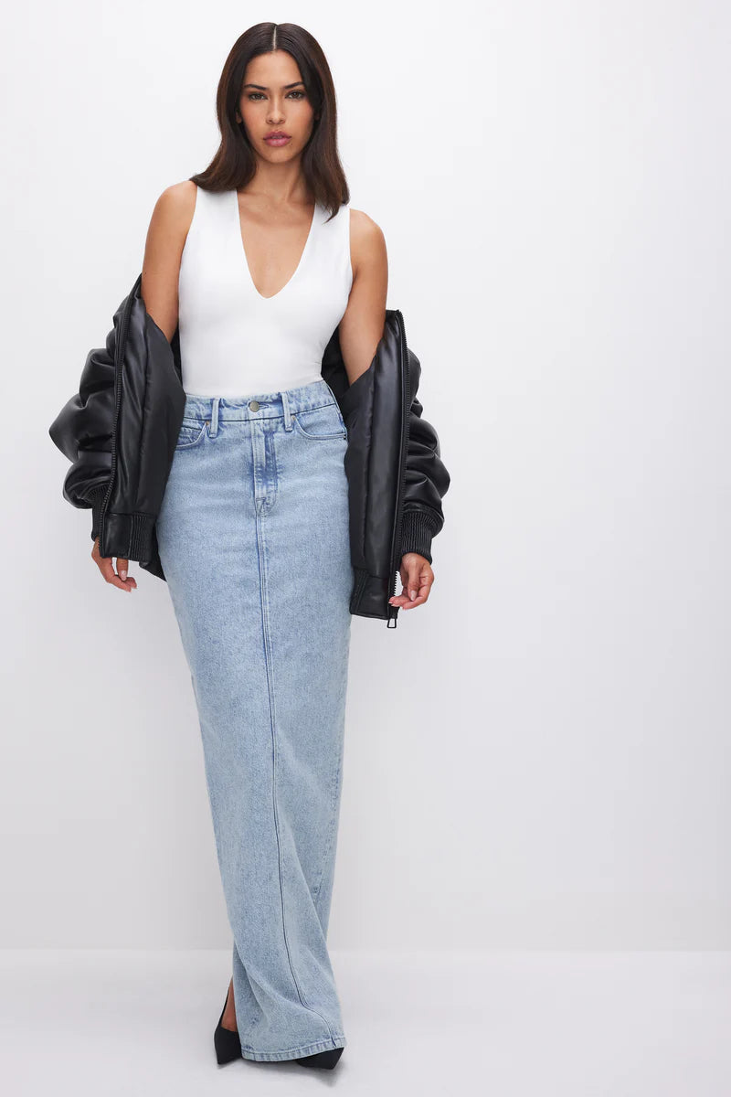 The curve-hugging, shape-enhancing, confidence boosting essential for every wardrobe. The Scuba Deep V Bodysuit is made with luxurious compressive fabric designed to sculpt and smooth. Wear this with your favorite pair of jeans or tailored pants for the ultimate go-to outfit.