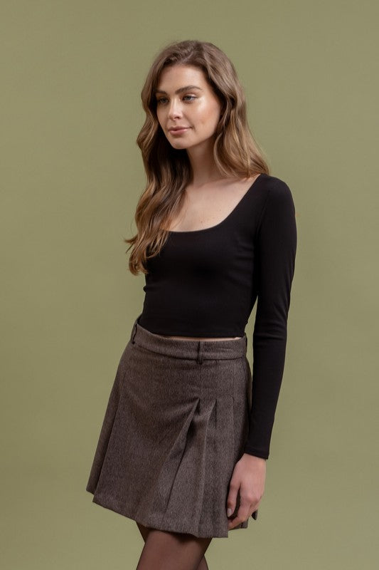 Scoop up some serious style with the Tiana Top! This ribbed, form-fitting crop top features a scoop neck and long sleeves, perfect for layering or showing off your curves. It's a great addition to any outfit!